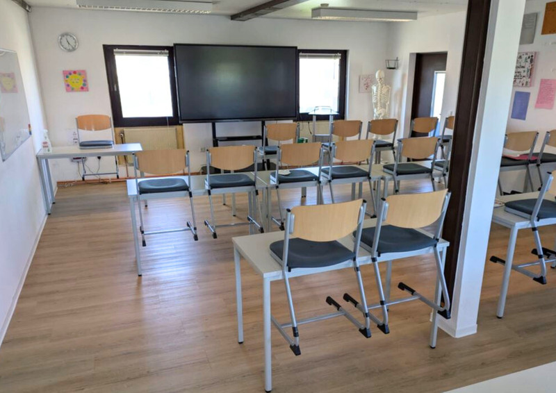Unser Schulstandort in der Von-Drais-Straße 12 in Simmern liegt ruhig und dennoch gut erreichbar mit dem Bus oder Fahrrad. Unsere neue Ausstattung sorgt für eine angenehme Lernatmosphäre mit viel Raum für Praxis und Austausch. Dank der engen Zusammenarbeit mit regionalen Praxen, Kliniken und Rehaeinrichtungen bekommst du echte Einblicke in den Berufsalltag. Direkt ums Eck findest du alles, was du für deine Pausen so brauchst: den Globus Simmern, die Bäckerei Jung und viele weitere Einkaufsmöglichkeiten oder Cafés. Auch grüne Ecken zum Abschalten sind nicht weit. Ein idealer Ort, um durchzustarten – mit Praxisnähe, guter Versorgung und viel Perspektive.