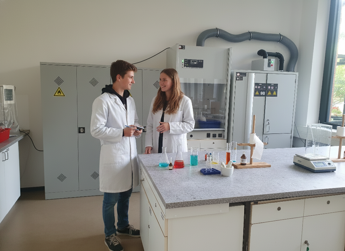 Unsere Schule für PTA in Mannheim überzeugt mit einem erstklassig ausgestatteten Labor, das dir einen eigenen Arbeitsplatz für praxisnahe Übungen und Experimente bietet. Hier lernst du in modernster Umgebung, direkt anwendungsorientiert und sorgfältig betreut – perfekt vorbereitet auf deinen Weg in die Apotheke, Forschung und Beratung.